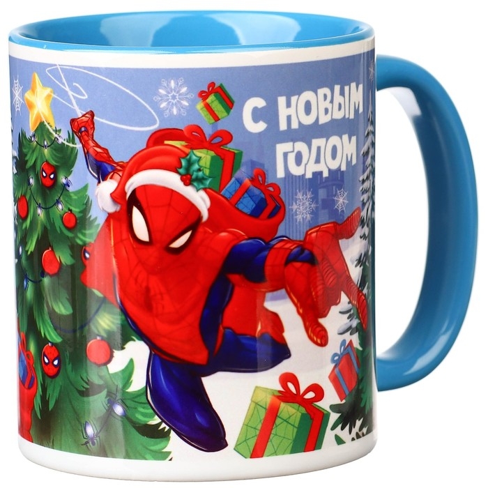 Кружка керамическая "С Новым годом!" 320 мл, Человек паук