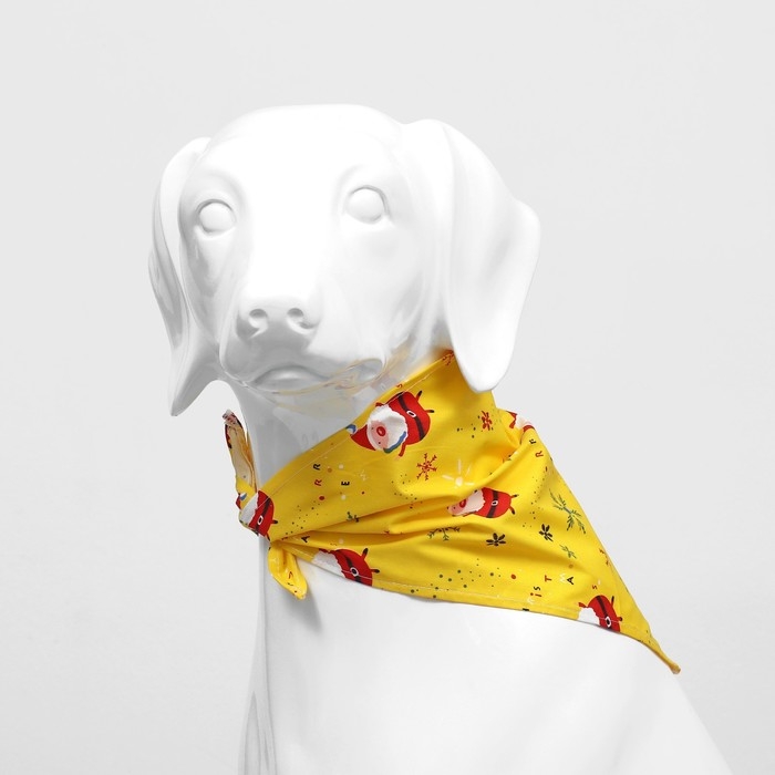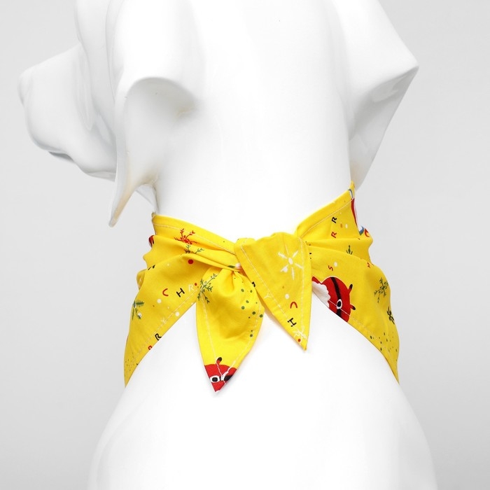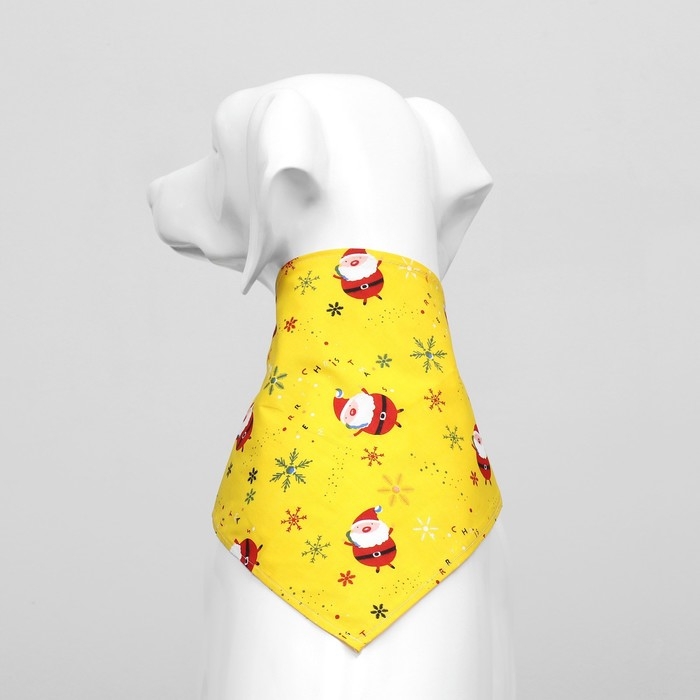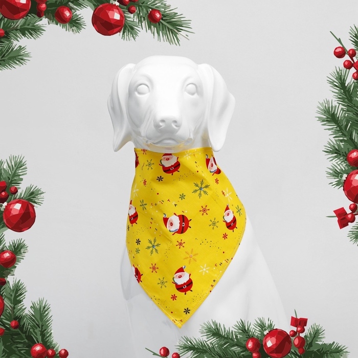 Бандана для животных "Снежинки" - это идеальное дополнение к праздничному наряду вашего любимого питомца во время Новогодних праздников. Эта яркая жёлтая бандана украшена весёлыми рисунками Деда Мороза и снежинками, которые придадут вашей собаке или кошке праздничный вид.