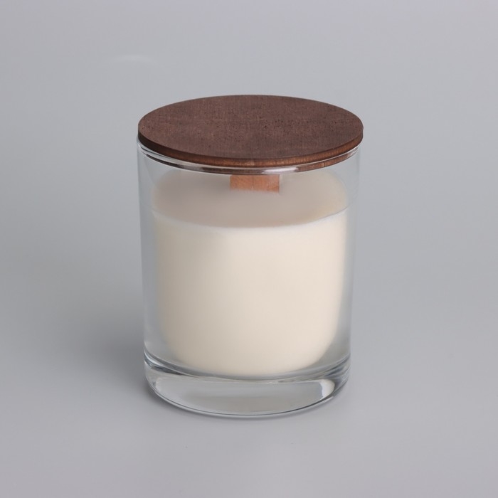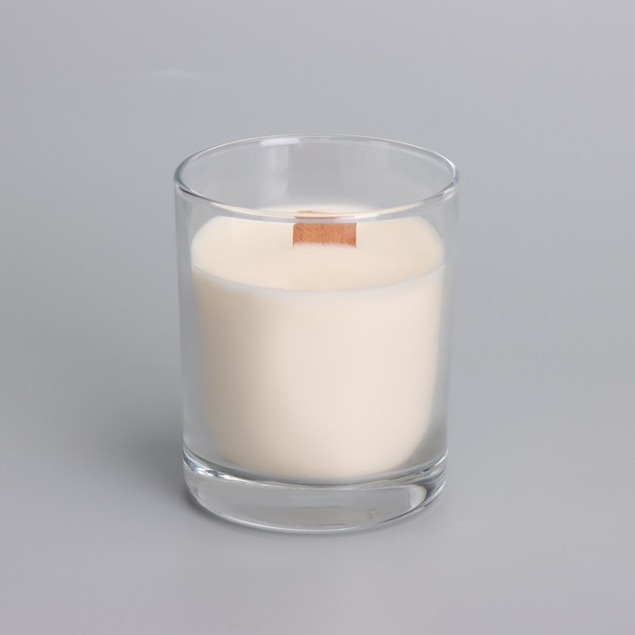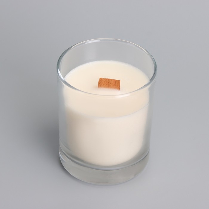 Свеча из соевого воска в стакане с деревянным фитилем и крышкой "Кокосовый рай", 110 гр