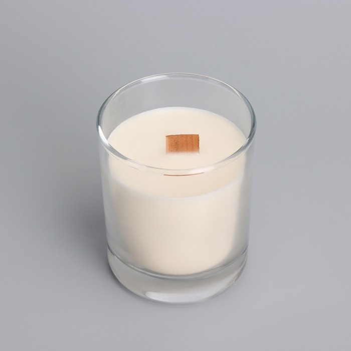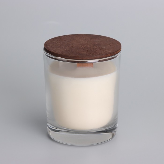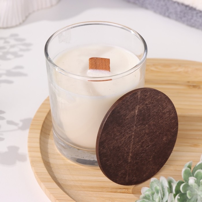 Свеча из соевого воска в стакане с деревянным фитилем и крышкой "Ароматная корица", 110 гр