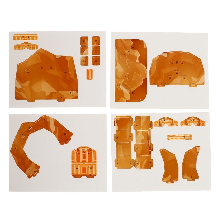 - Для сборки не потребуется клей или ножницы. Достаточно выдавить картонные элементы с листа-основы и, руководствуясь числовыми обозначениями на деталях, последовательно соединить их друг с другом.