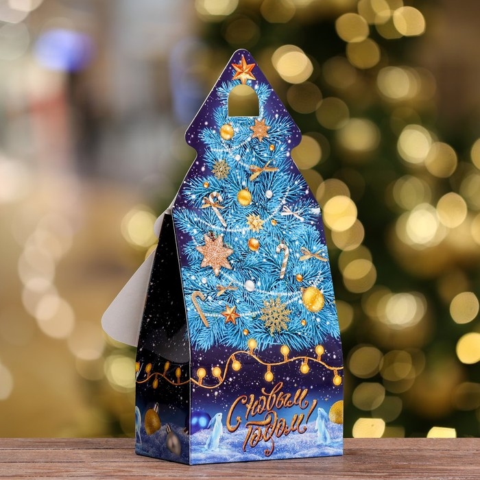Подарочная коробка "Ёлка "Синий иней", 15,7 х 9,5 х 22,5 см