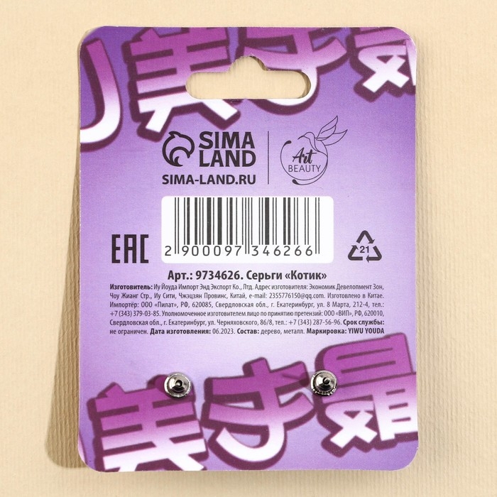 Серьги «Magical Girl» гвоздики, 6х9 см