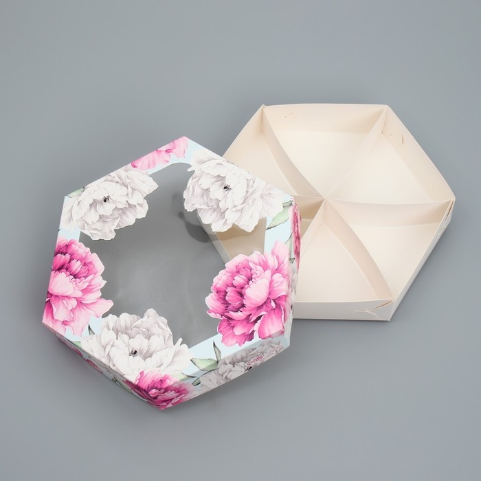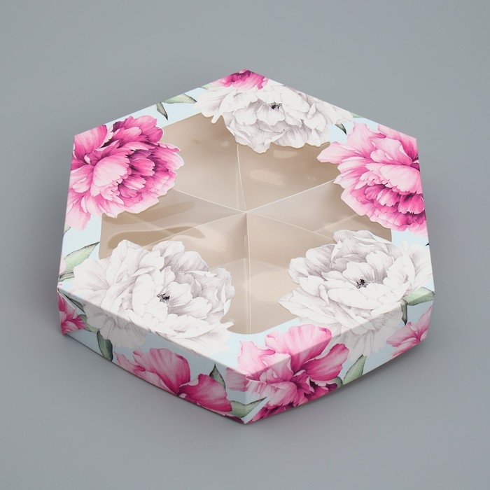 Коробка кондитерская, упаковка, «Пионы», 23 х 23х 4 см