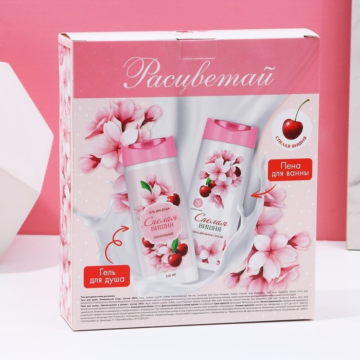 Подарочный набор косметики «Расцветай!», гель для душа и пена для ванны, 2 х 250 мл, ЧИСТОЕ СЧАСТЬЕ