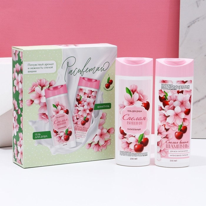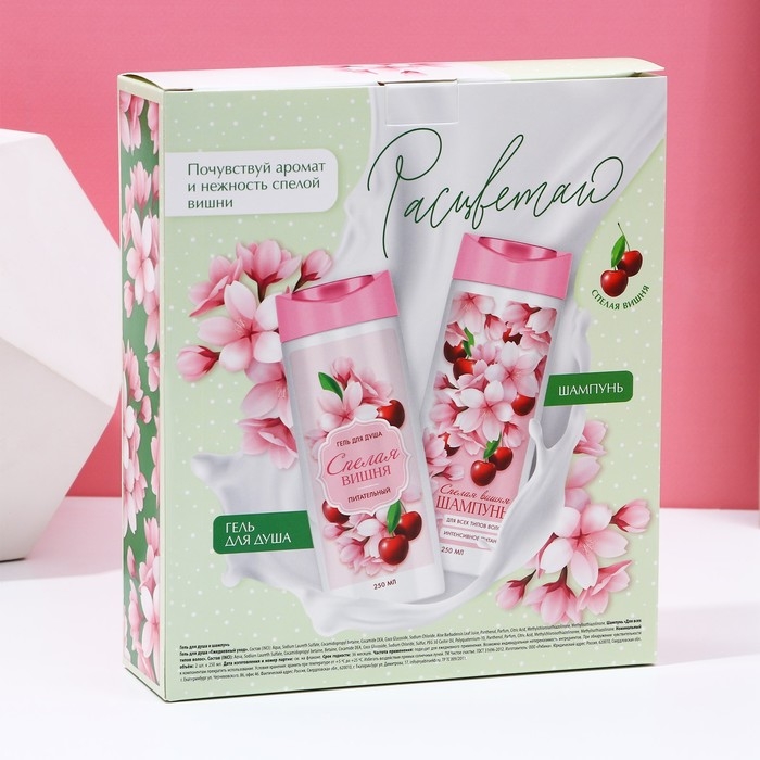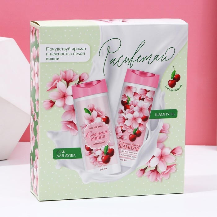Подарочный набор косметики «Расцветай!», гель для душа и шампунь для волос, 2 х 250 мл, ЧИСТОЕ СЧАСТЬЕ