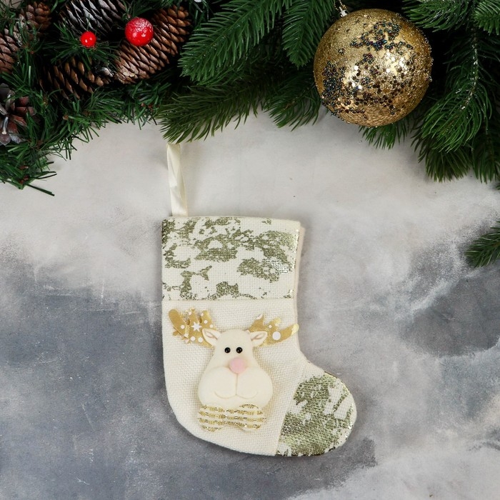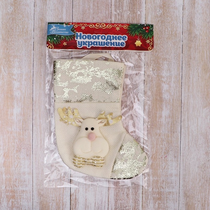 Носок для подарков "Олень, поталь" 11х16 см, золото
