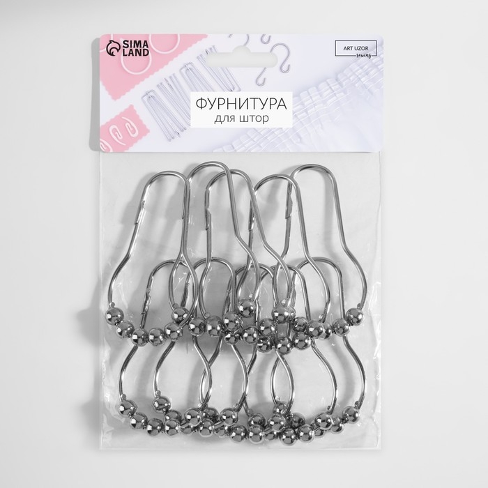 Крючок для штор с шариками, 7,5 × 4 см, 10 шт, цвет серебряный