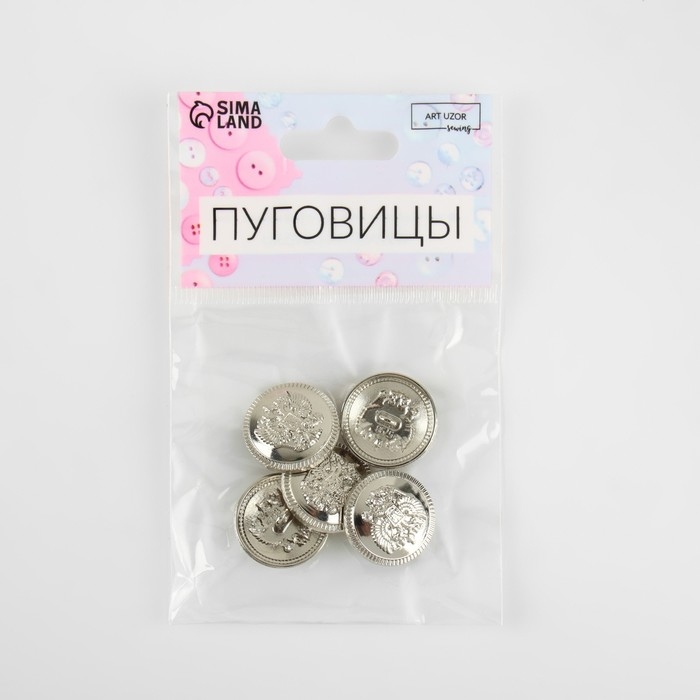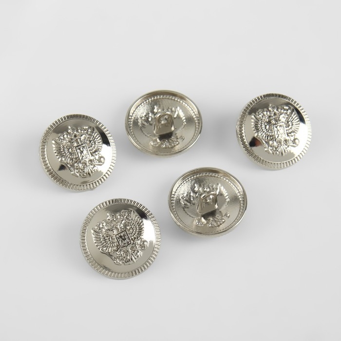 Набор металлических пуговиц на ножке «Герб России», d = 20 мм, 5 шт, цвет серебряный