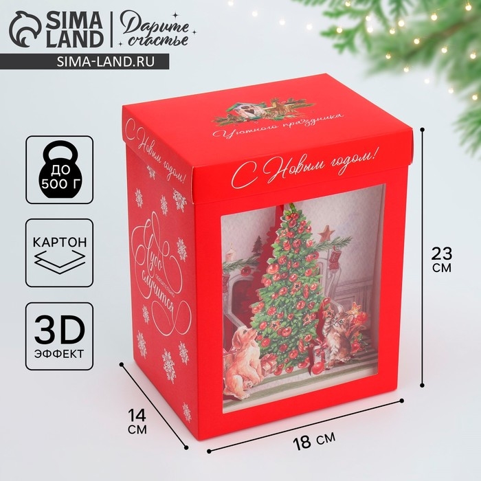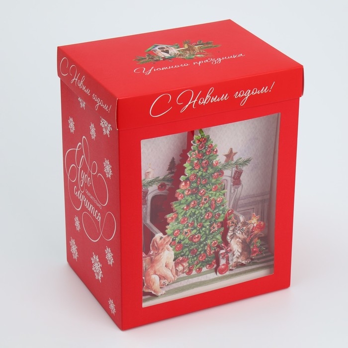 Подарочная коробка новогодняя складная с 3D эффектом «Чудо обязательно случится», 18 х 14 х 23 см, Новый год