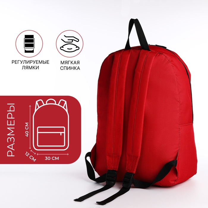 Рюкзак школьный на молнии, наружный карман, цвет красный