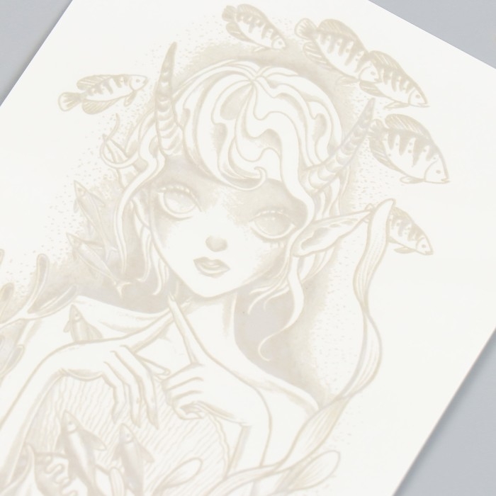 Татуировка на тело синяя "Подводная девочка" 18х11 см