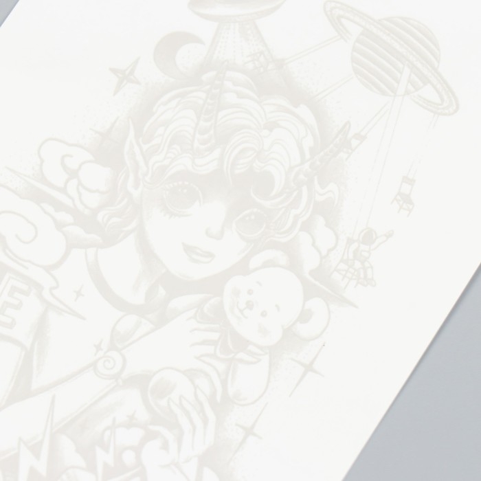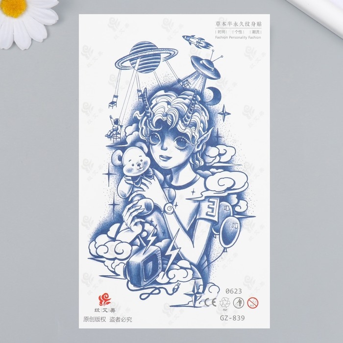 Татуировка на тело синяя "Космический мальчик" 18х11 см
