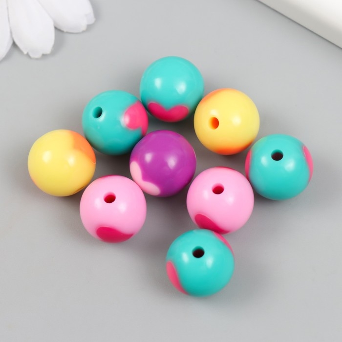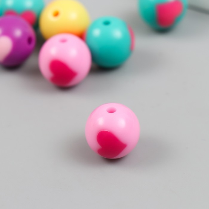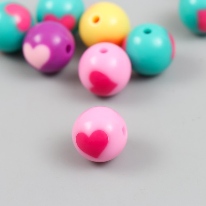 Бусины пластик "Шарик с сердечком" глянец МИКС d=1,6 см набор 20 гр