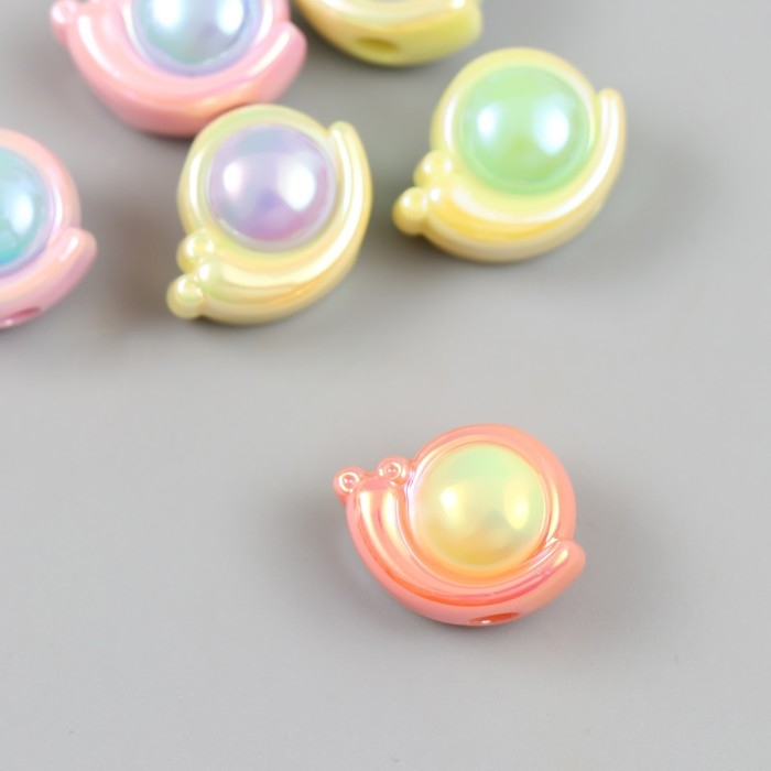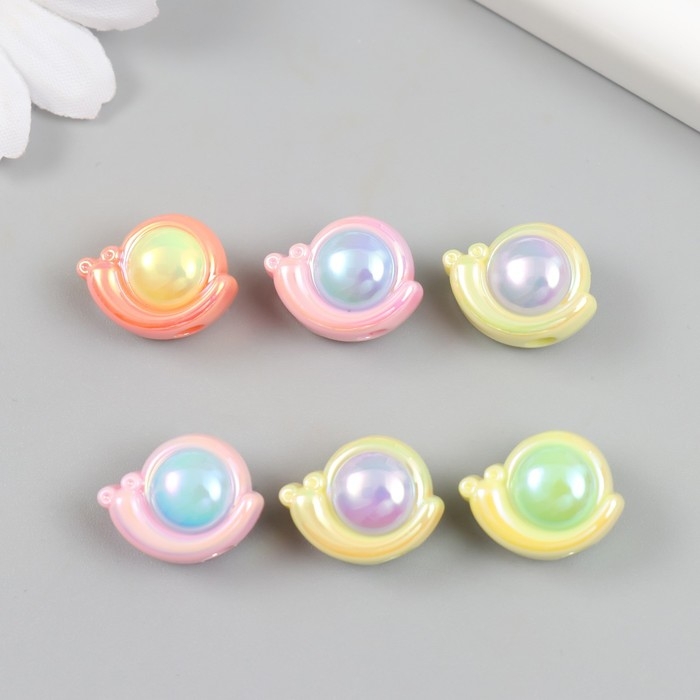 Бусина для творчества пластик "Улитка" набор 6 шт. цветная с перламутром МИКС 1,4х1,8 см