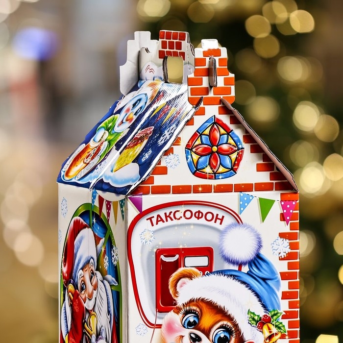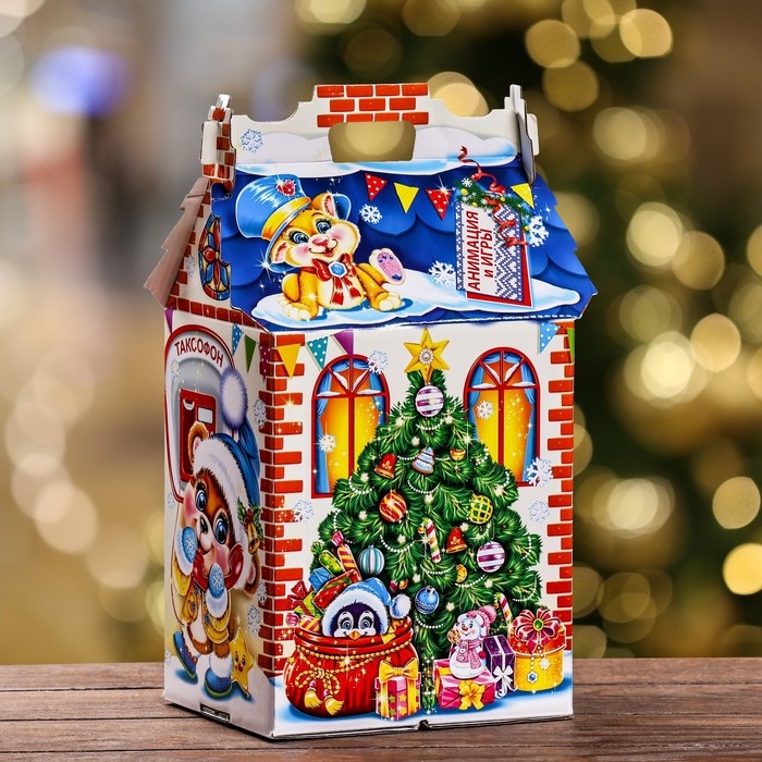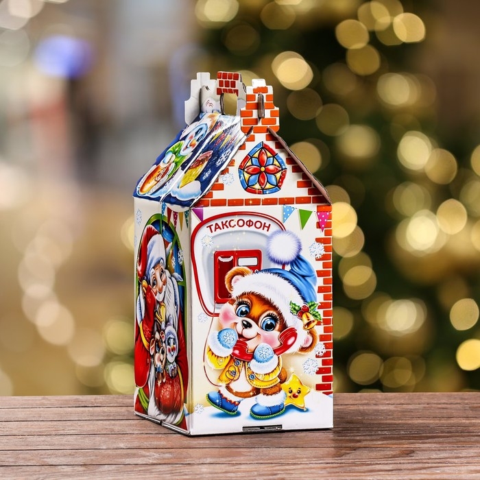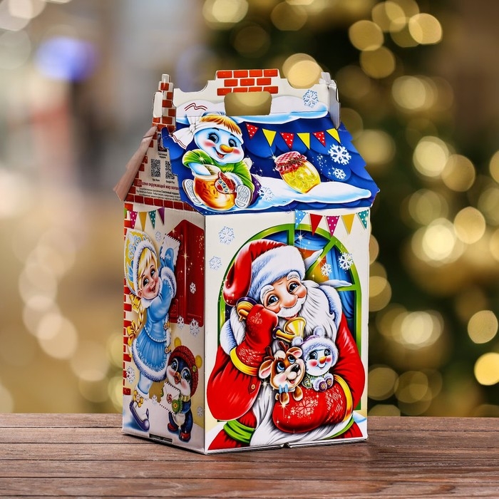 Новый год. Подарочная коробка "Поздравление Деда Мороза" , Дом , 17,6 х 14,3 х 29 см.