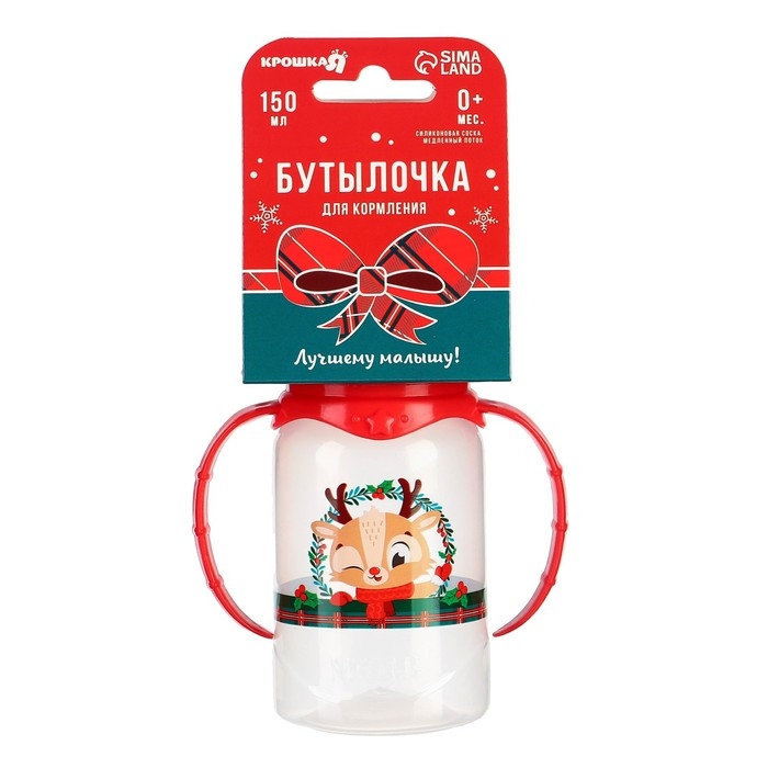 Бутылочка для кормления Крошка Я «Олененок», новогодняя, классическое горло, 150 мл., от 0 мес., цилиндр, с ручками, подарочная упаковка, Крошка Я