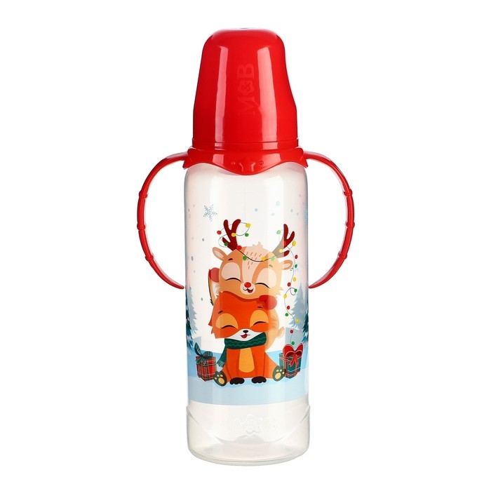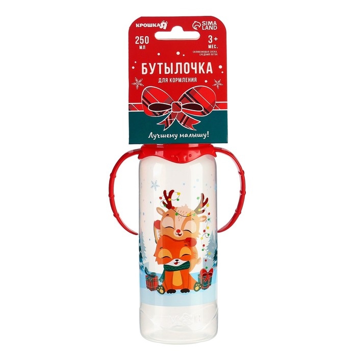 Бутылочка для кормления «Новогодние друзья», классическое горло, 250 мл., от 3 мес., цилиндр, с ручками, подарочная упаковка, Крошка Я