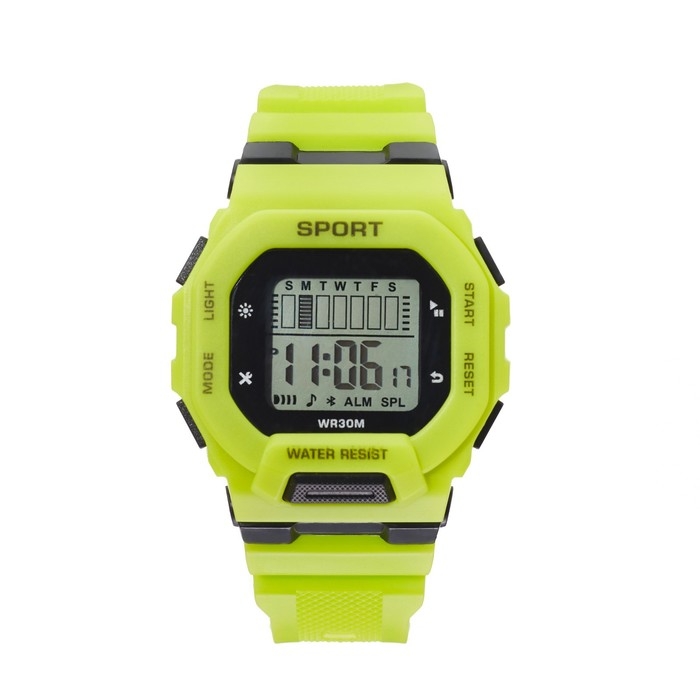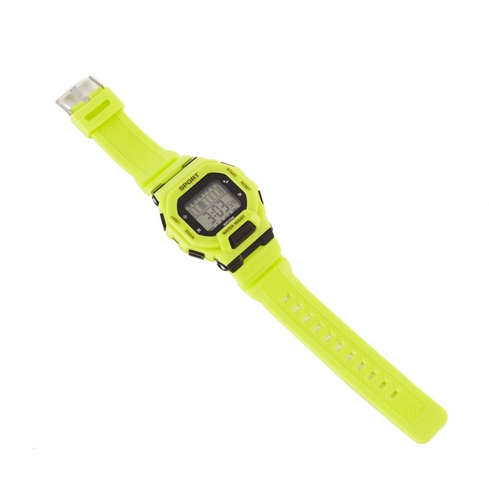 Часы наручные электронные, d-4.5 см, с будильником, зеленые