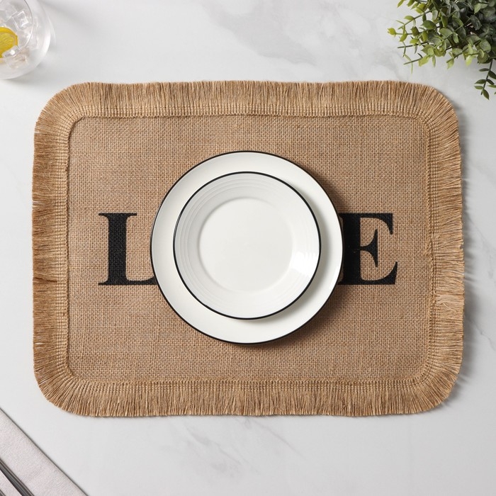 Салфетка сервировочная на стол Доляна «Любовь», 40×30 см, цвет бежевый
