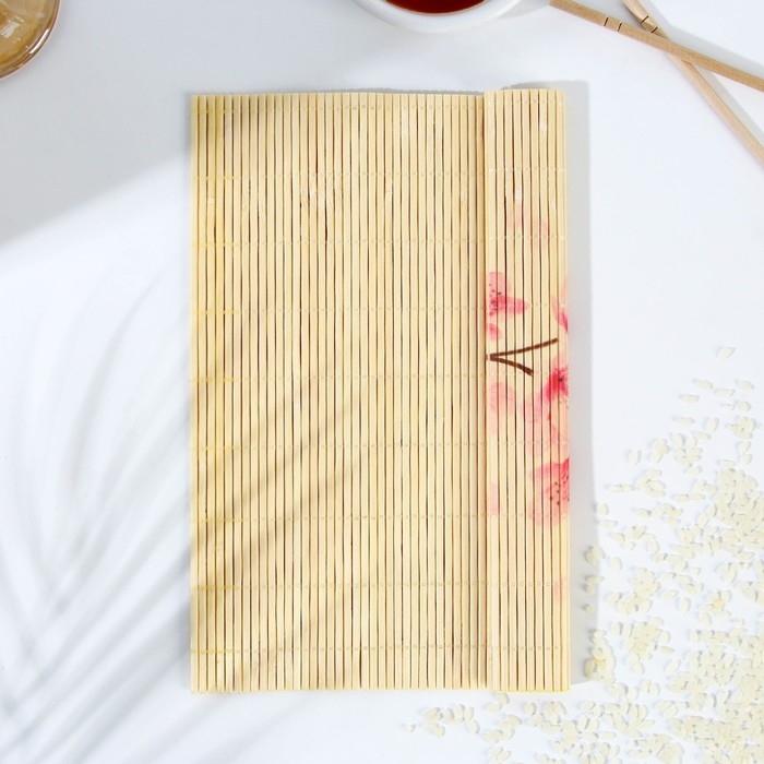Циновка Макису для приготовления суши и роллов/коврик бамбуковый «Цветы», 22 х 24 см