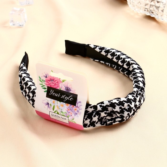 Ободок для волос "Амата" гусиная лапка, 2,5 см, чёрно-белый