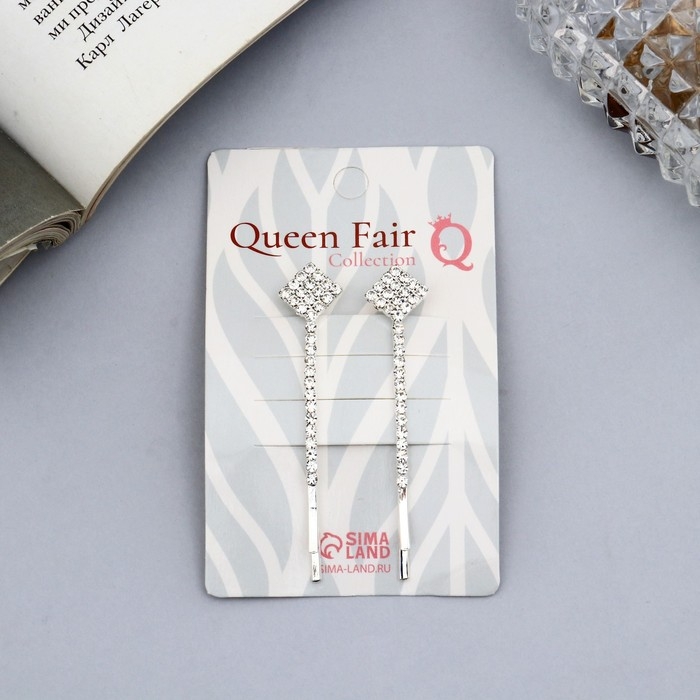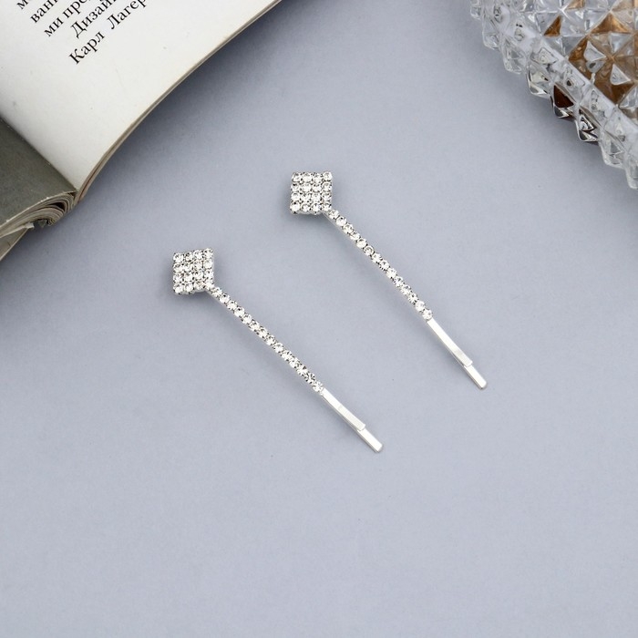 Невидимка для волос "Вивьен" (набор 2 шт) ромб, 5 см, серебро