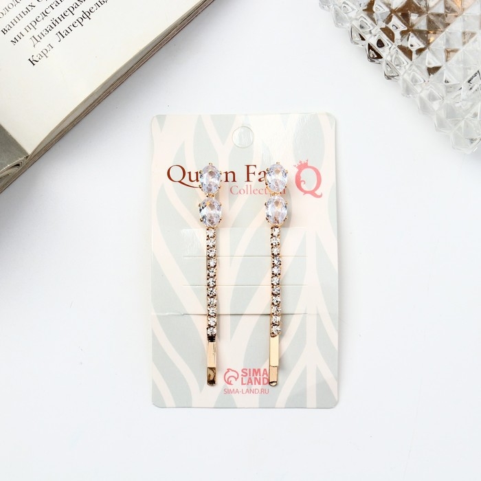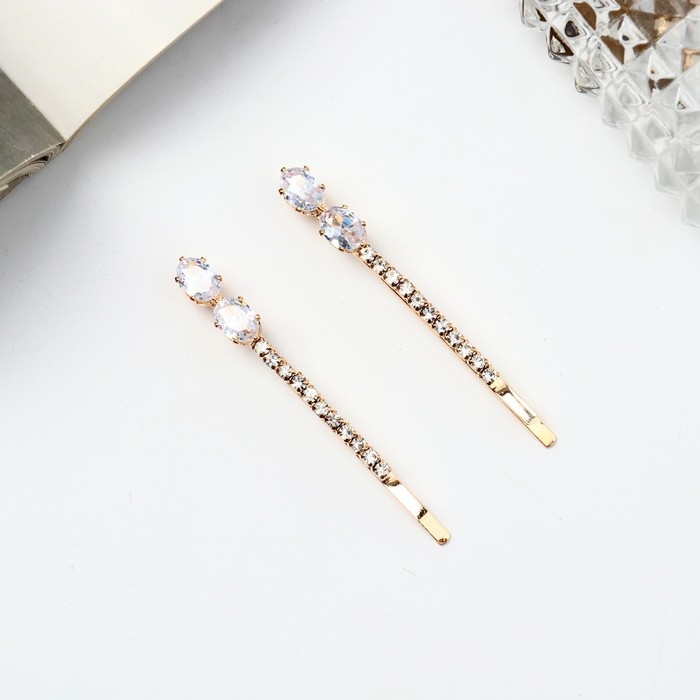 Невидимка для волос "Вивьен" (набор 2 шт) камни сияние овалы, 5 см, золото