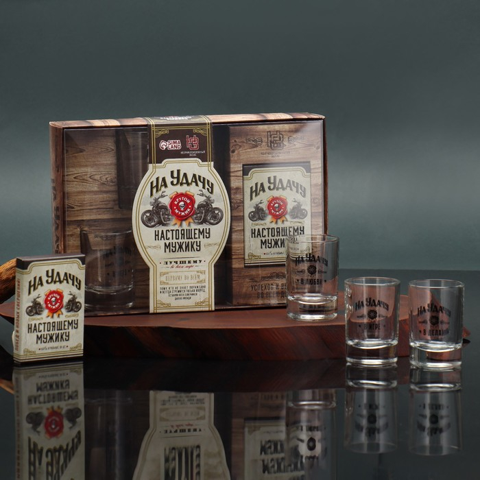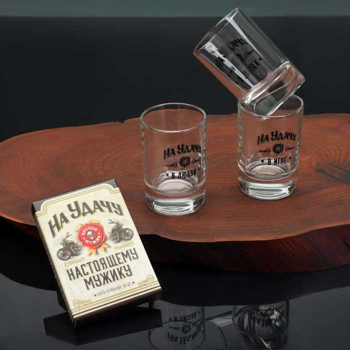 Подарочный набор «На удачу. Настоящему мужику», рюмки и карты
