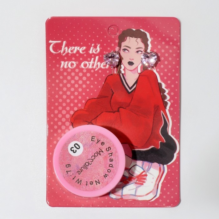 Набор 2 предмета: серьги, глиттер «Сердце», цвет розовый в серебре, цвет глиттера МИКС