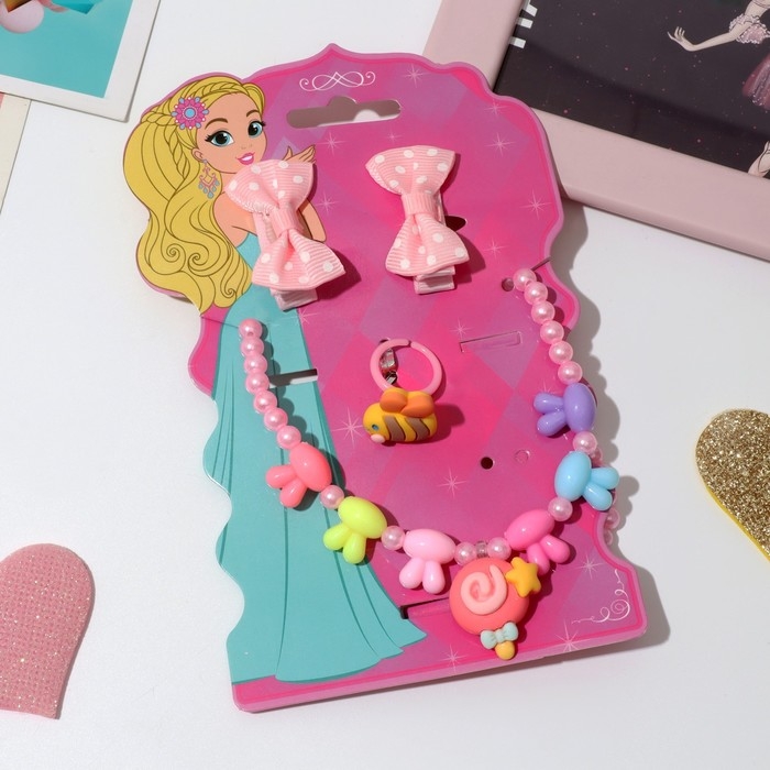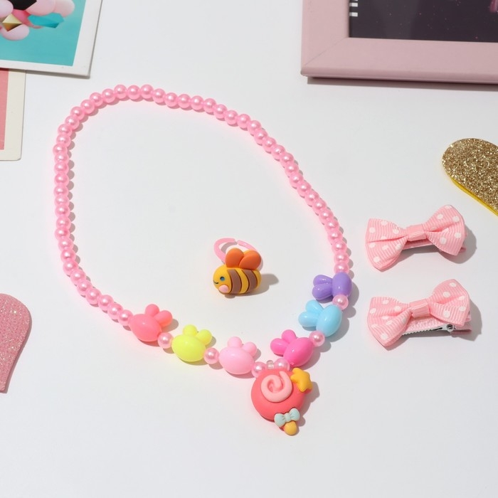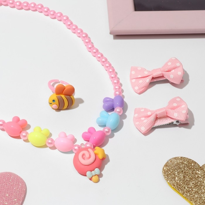 Комплект детский «Выбражулька» 4 предмета: 2 заколки, кулон, кольцо, пчёлка, цветной