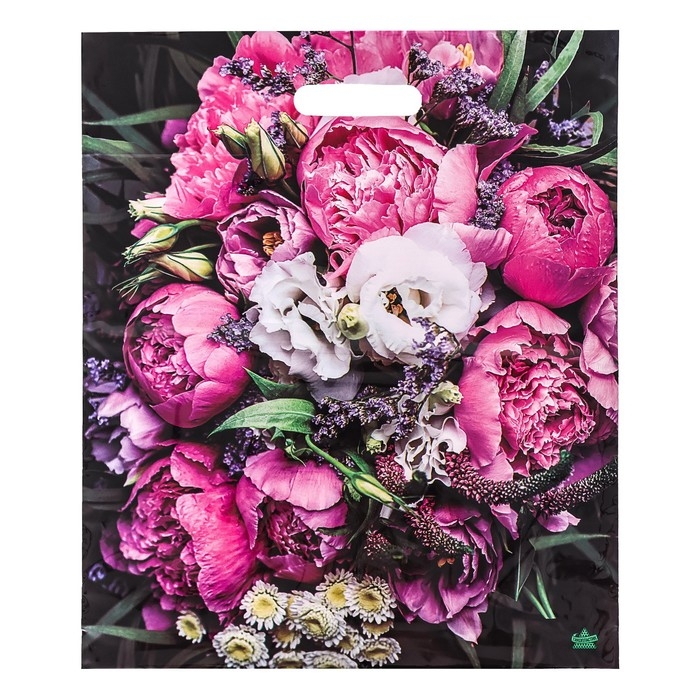 Пакет "Пионы", полиэтиленовый с вырубной ручкой, 38х45 см, 60 мкм набор 5 штук