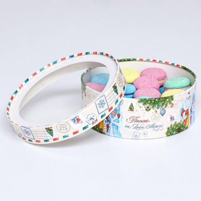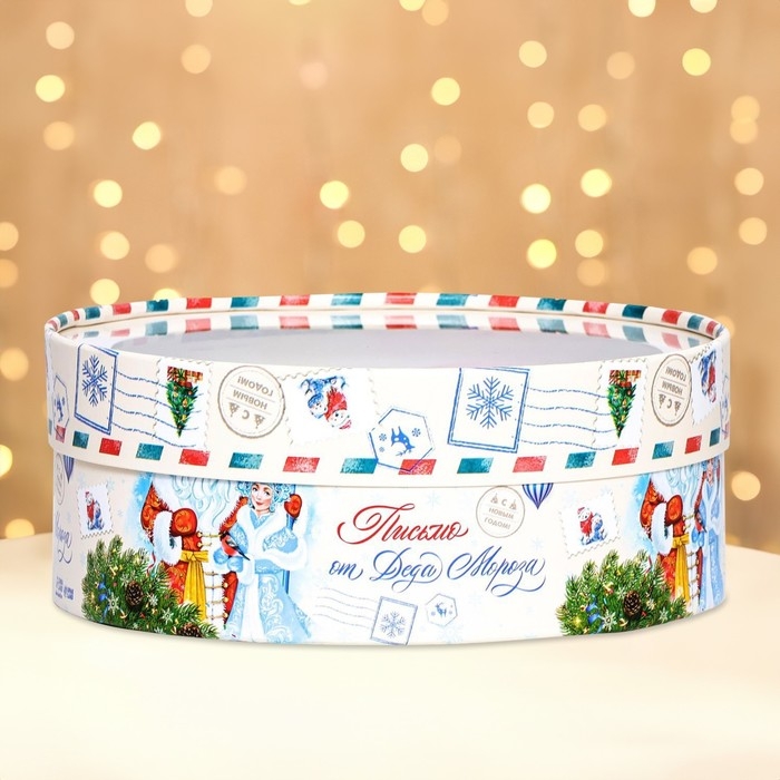 Новый год. Коробка подарочная новогодняя для макарун тубус с окном "Письмо от Деда Мороза" 21 х 21 х 8 см.