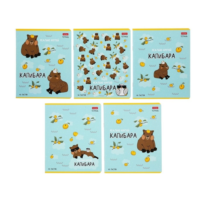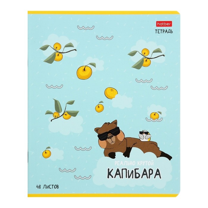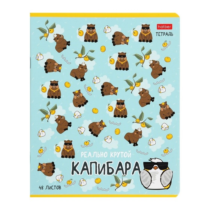 Тетрадь 48 листов в клетку "Реально крутой Капибара", обложка мелованный картон, блок 65 г/м2, 5В МИКС