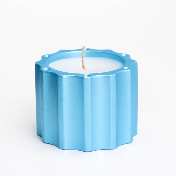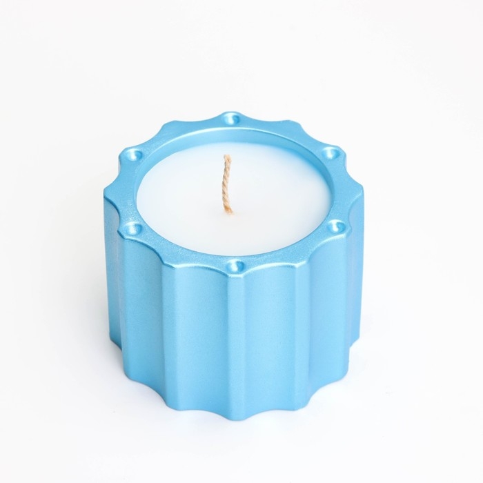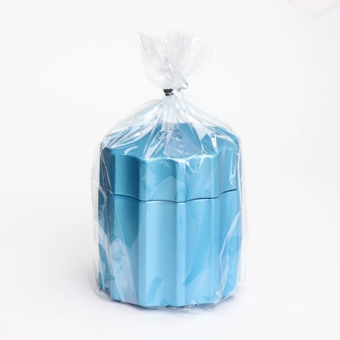 Свеча в подсвечнике из гипса с крышкой с широкими гранями, 7,5х8,5см, голубой