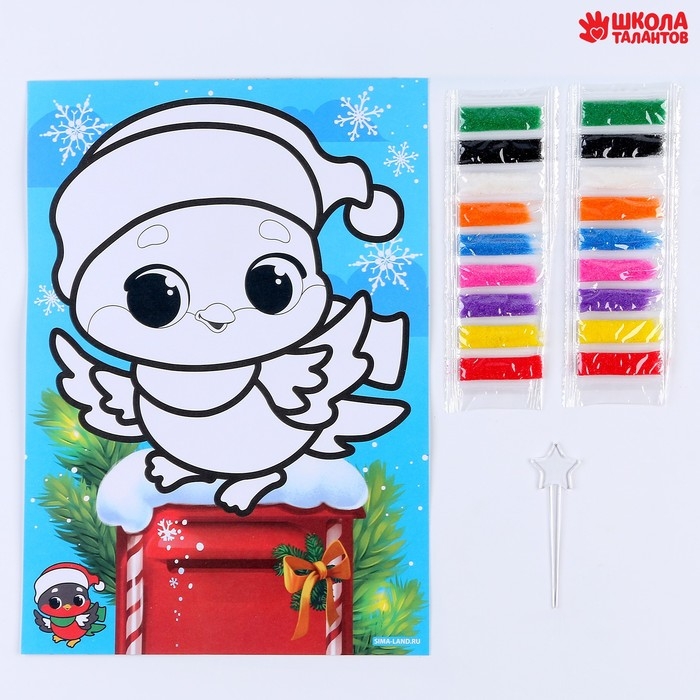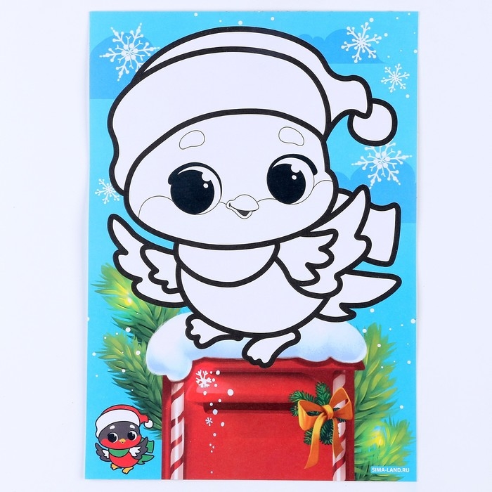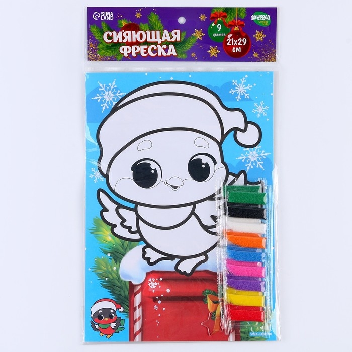 Сияющая фреска на новый год «Снегирь», 21 х 29,7 см, новогодний набор для творчества