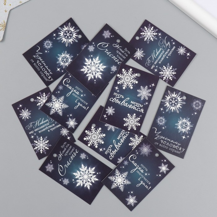 Бирка картон "Снежинка" набор 10 шт (5 видов) 4х6 см