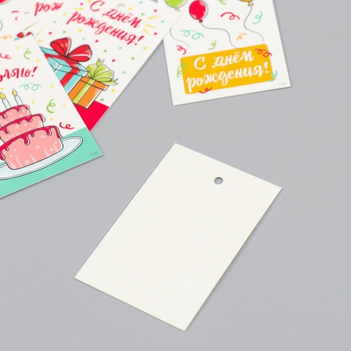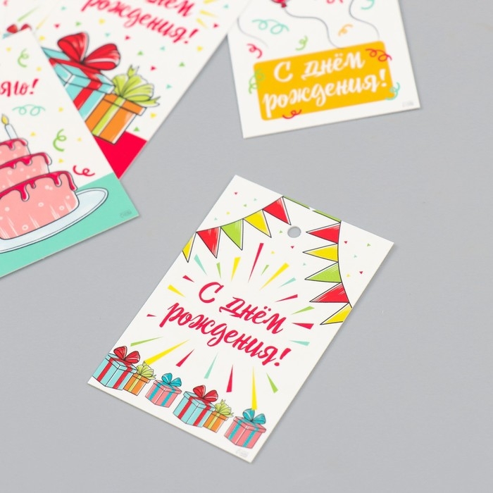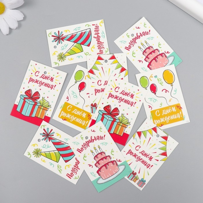 Бирка картон "День рождения" набор 10 шт (5 видов) 4х6 см