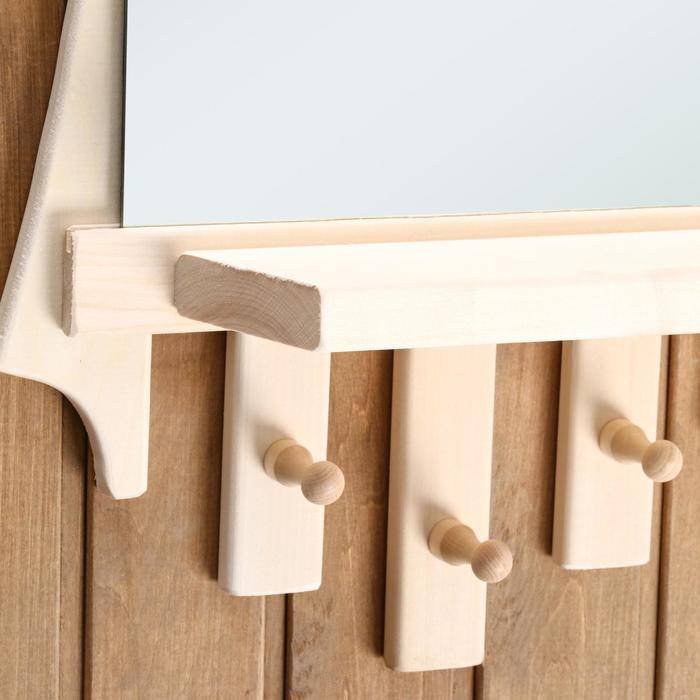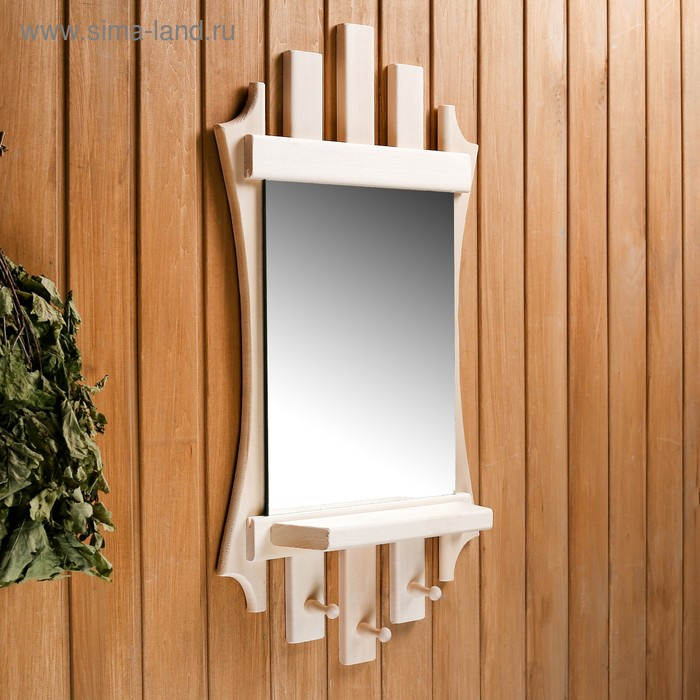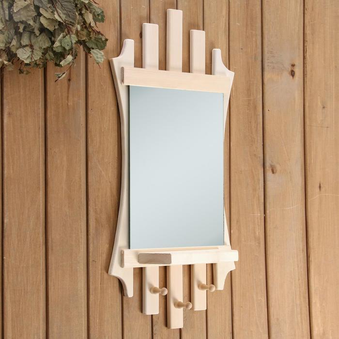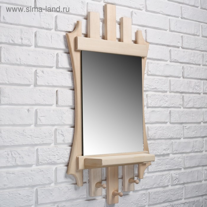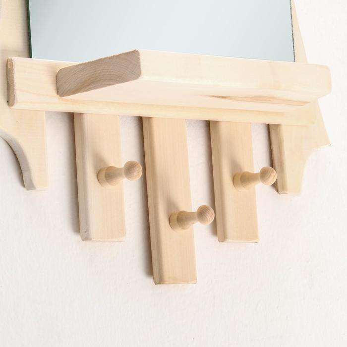 Зеркало "Резное Лесенка" с полкой 3 крючка, 75×40 см