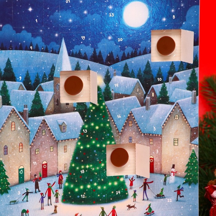 Нежные мини-плитки из молочного шоколада словно скрывают в себе тайны каждого дня накануне праздников.