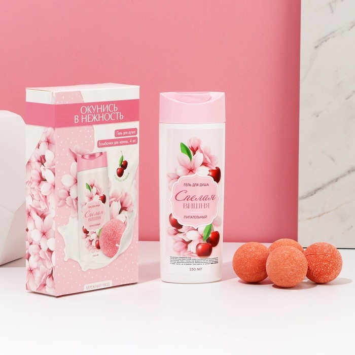 Подарочный набор косметики «Окунись в нежность!», гель для душа 250 мл и бомбочки для ванны 4 х 40 г, ЧИСТОЕ СЧАСТЬЕ