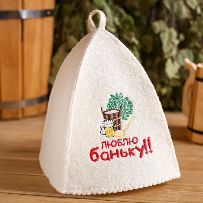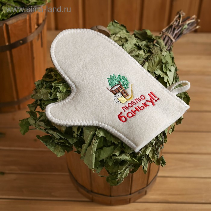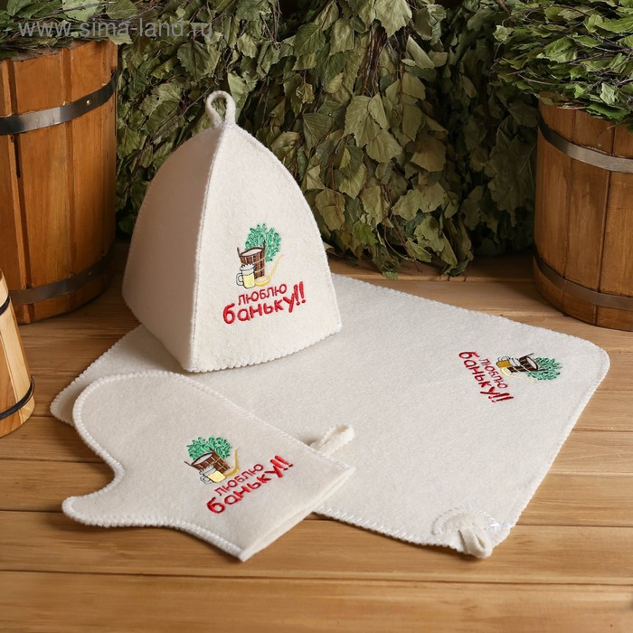 Набор банный 3 предмета "Люблю баньку", белый, в плёнке