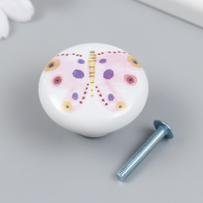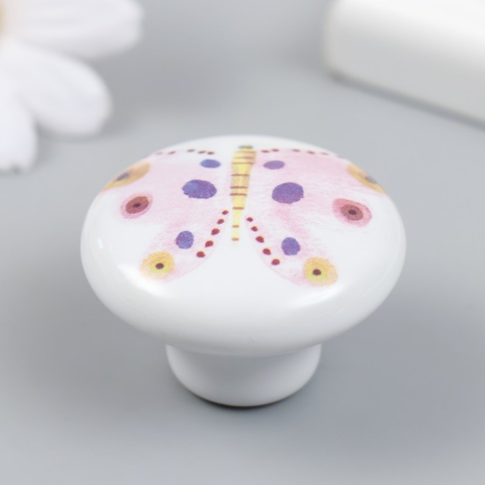 Ручка для шкатулки керамика, металл "Бабочка" 3,8х3,8х2,8 см
