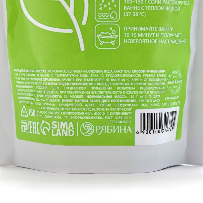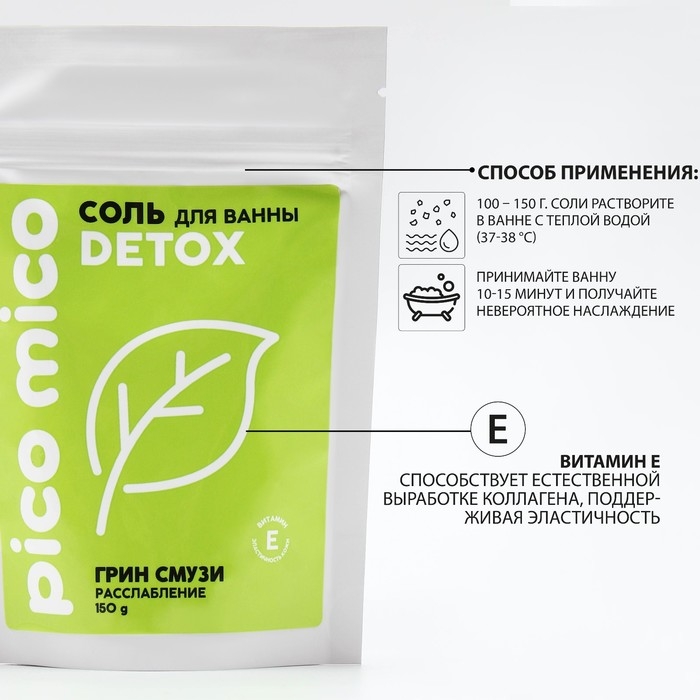 Соль для ванны, расслабление, 150 г, аромат грин-смузи, PICO MICO