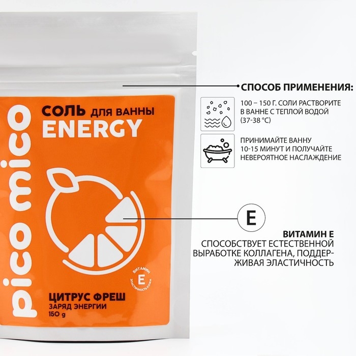 Соль для ванны, заряд энергиии, 150 г, аромат цитрус-фреш, PICO MICO