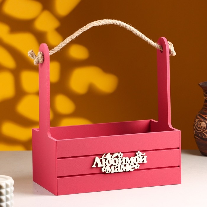 Ящик - кашпо деревянный 25х15х30 "Любимой Маме" Бордо