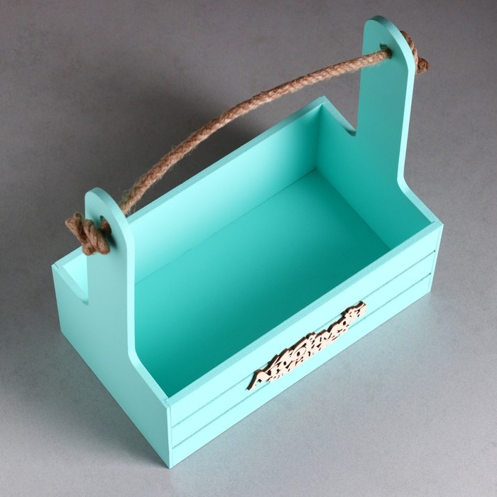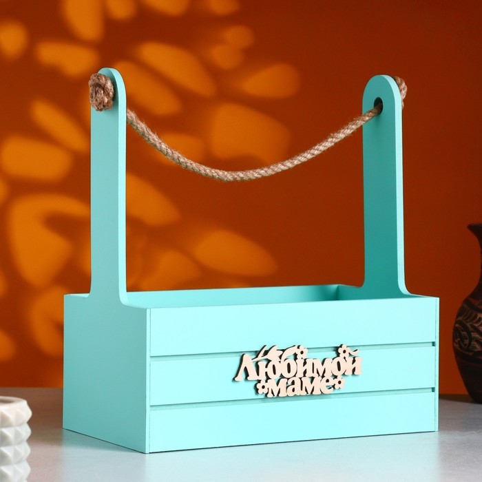 Ящик - кашпо деревянный 25х15х30 "Любимой Маме" Мятный