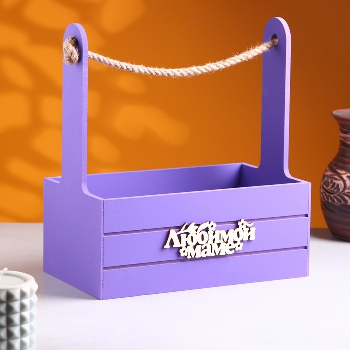 Ящик - кашпо деревянный 25х15х30 "Любимой Маме" Фиолетовый
