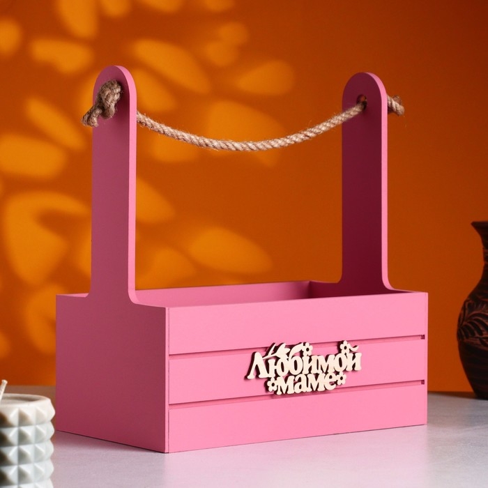 Ящик - кашпо деревянный 25х15х30 "Любимой Маме" Розовый Коралл