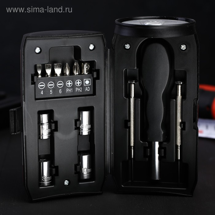 Подарочный набор в банке состоит из 13 предметов, каждый из которых будет полезен и надежен в тысячах жизненных ситуациях: при ремонте автомобиля или бытовой техники, при сантехнических работах в квартире или на даче и так далее. Для удобства работы данными приспособлениями предусмотрена удобная в обхвате рукоятка, повторяющая форму ладони.